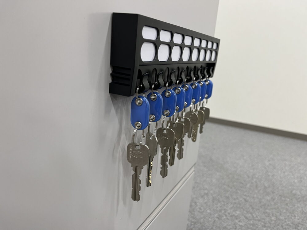キーホルダー型RFIDタグは、鍵や金具類、保管庫の板など、金属物の影響が避けられません。また、タグアンテナを大きくすることで感度は向上しますが、かさばって持ち運びに不便となります。