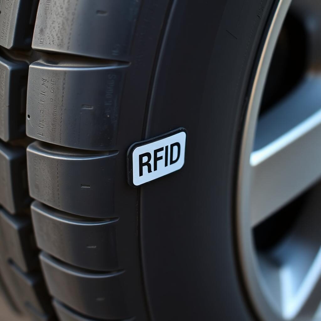 This RFID tag is designed to be embedded within the tire rubber during the tire molding stage.